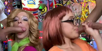 33:23 Scooby-Doo cosplay with Velma and Daphne sucking off and banging hard cocks